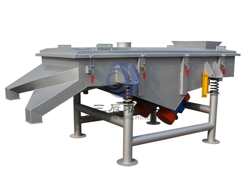 1.SC系列直線振動(dòng)篩利用雙振動(dòng)電機(jī)激振作為振動(dòng)源,使物料在篩網(wǎng)上被拋起,同時(shí)向前做直線運(yùn)動(dòng),通過(guò)多層篩網(wǎng)產(chǎn)生數(shù)種規(guī)格的篩上物、篩下物,分別從各自的出口排出。
